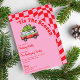 Retro Van Red Pink Checkerboard Convite de festas de Natal - Celebrar os feriados com este Convite de festas de Natal, retrô, vintage, estilo 70. Apresentando uma paleta de cores de tendência de vermelho e rosa com padrão de fundo distorcido. Um arco com letra retrô e um ranho, carregando hippie van de Natal, adornam a frente. Edite este modelo de convite para festas de Natal com seus próprios detalhes de evento. Disponível para impressão ou como modelo de download digital instantâneo, envie-o facilmente via texto, email ou mídia social. Perfeito para aqueles que querem fazer uma festa de Natal retrógrada, festa de Natal hippie, ou até um convite de festas de escritório divertido.
