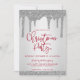 O brilho da prata natalina mergulha no Convite de festas de Natal com pingos de brilho e um texto vermelho festivo de inverno sobre um fundo metálico de prata chique. Um convite divertido e festivo para sua festa pessoal, corporativa ou de escritório. Perfeito para sua estética de luxo! Você está pingando no luxo, então seus convites deveriam ser também! Entre em contato conosco em cedarandstring@gmail.com se precisar de assistência com o design ou produtos correspondentes.
