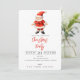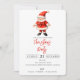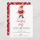 Este cartão de convite de festas de Natal apresenta uma cláusula Santa, um roteiro de "festa de Natal" vermelho pintinho e um fundo de tartan de Natal vermelho. personalize com o seu nome de família e detalhes da festa.