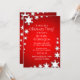 Flocos de neve brancos em um fundo vermelho decoram esta convite de festas de Natal. "Feliz Natal" está escrito nas costas. Hora de comemorar umas férias! Personalize isso com os vários estilos de fonte e cores diferentes do Zazzle. Este design pode ser transferido para outros produtos. Se precisar de ajuda, por favor hesite em contactar-me em KarenCoffelt@wolfmoonartanddesign.com, e terei todo o prazer em ajudá-lo.