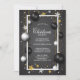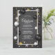 Convide seus amigos e família para comemorar o Natal este ano com este convite moderno que mostra uma fronteira enfeitada com bolas negras e brancas de árvores de Natal.