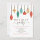 O convite apresenta Enfeites de natal suspensos e detalhes do seu partido em fontes modernas. O convite da Festa de Feriado pode ser facilmente personalizado para o seu evento adicionando os detalhes do evento, o estilo da fonte, o tamanho da fonte e a cor e a redação da sua escolha, clicando no botão 'Personalizar esta modelo'. Personalize ainda mais este design clicando em 'Editar usando a Ferramenta Design'