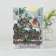 Compartilhe do calor da arte do vintage esta época natalícia com estes convites inteiramente customizáveis da festa natalícia. Excelente para um partido de comensal! O cobrir caracteriza uma imagem do victorian do vintage de pássaros de um Natal, talvez cardeais, sentando-se em uma cerca na frente de uma igreja.