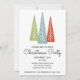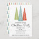 Estes convites de festas personalizados são perfeitos para festas de Natal e feriados. Eles apresentam ilustrações simples e modernas de um trio de pinheiros em verde-claro, azul-claro e vermelho sobre fundo branco. Esses convites para festas são fáceis de personalizar com todos os detalhes de seu partido. O verso tem um padrão de árvores de Natal.