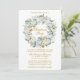 Convites Festa de Natal Dourada Azul com Cor Floral