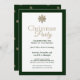 Convites Festa de Natal Dourada com Neve Verde Elegante