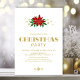 Compartilhe a alegria e convide seus amigos e entes queridos para a sua celebração de Natal com este texto simples, mas na moda, de ouro, com um convite de festas de Natal de poinsettia vermelha.