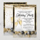 Convite para Festa de Natal Feriado de Champagne. Partido Xmas Corporativo. Ouro elegante e bolhas pretas com brilho dourado e neve. Nota: Todas as imagens planas!