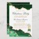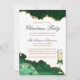 Placa de Convite de festas de Natal Elegante Elegante Emerald Green e Dourada Marble Agate Geode - Fundo Branco com Script Dourado. Vidro de Champanhe com Arco.