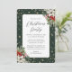 Este elegante convite de festas de Natal verde e dourado, com confete de ouro, poinsettia branca, Holly com bagas vermelhas e outros botânicos de inverno é perfeito para festas de Natal, esquinas de férias, eventos corporativos, festas de coquetéis de férias e muito mais. Personalize facilmente este convite com os detalhes do seu partido.