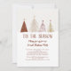 O design de festa sazonal apresenta uma exibição elegante de árvores de Natal nevadas em vermelho, dourado e rosa sobre um fundo bege creme neutro levemente listrado e nevado. A seção inferior é coberta de neve branca com "É ÉPOCA" em tipografia clássica elegante. Adicione a linha de convite personalizado para sua festa e detalhes com o modelo fácil de usar com letra cursiva vermelha correspondente. Não perca os copos, guardanapos, pratos de papel e porta-copos correspondentes! Por favor, envie mensagem ou e-mail para beachpausedesigns@gmail.com para assistência de personalização adicional.