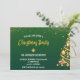 Este Elegante Bokeh faux gold Glitter Pine Tree Convite de festas de Natal: A imagem apresenta um festivo design de Natal com um fundo verde-escuro. O lado direito da imagem é adornado com uma árvore de Natal estilizada feita de elementos ouros. A árvore é decorada com ornamentos brilhantes, incluindo bolas de ouro, fitas, poinsettias e flocos de neve. As decorações são agrupadas em direção ao canto inferior direito, gradualmente caindo para cima para dar a aparência de uma forma de árvore de Natal. No topo da imagem, partículas de ouro e estrelas caem em cascata como confete, aumentando o humor celebratório. A composição global é elegante e festiva, com as cores verde-escuro e dourado criando uma atmosfera de férias luxuosa e quente. Se você quiser personalizar qualquer produto ou transferir o design para qualquer outro produto, entre em contato com o designer.