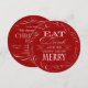 Convite personalizável redondo elegante com as palavras Comer, Beber e ser Feliz. Fácil de editar, combina muitas vezes. A cor vermelha de fundo é personalizável.