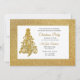 Este convite apresenta uma árvore de Natal de cor dourada de ornamentado texturizada com fundo dourado. Um design elegante para suas festas de férias.