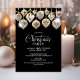 Convide seus amigos e entes queridos para uma noite inesquecível cheia de alegria, risos e alegria festiva. Este convite maravilhosamente desenhado apresenta elegantes ornamentos incrustados em diamante de ouro, graciosamente pendurados em correntes de ouro. Junte-se para criar lembranças queridas nesta temporada de festas. Vários tipos de papel e estilos de canto estão disponíveis para seus convites exclusivos, juntamente com a opção de download se você preferir um formato digital.