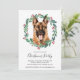 Convide amigos e família para a sua festa de Natal ou Feriado com este elegante German shepherd de Natal num cartão de coroa, e decoração correspondente. Este cartão de german shepherd apresenta um cão aquarela numa coroa verde e vermelha com sagrado e bagas. Personalize com todos os detalhes da festa de natal. Este convite de natal de german shepherd será um favorito entre amantes de german shepherd, amantes de cachorros e amantes de os animais. Visite nossa coleção para combinar cartões de natal de german shepherd, decoração doméstica e presentes. COPYRIGHT © 2020 Judy Burrows, Black Dog Art - Todos Os Direitos Reservados. Convite de festas de Natal Elegante para Cachorros german shepherd