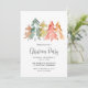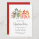 Convite elegante e simples para festas de Natal, com abstrato de cor d'água de pinheiros em verde-mudo, vermelho, ouro e laranja e "Festa de Natal" num roteiro de na moda.