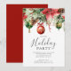 Festa moderna de férias elegância, com uma belíssima poinsettia e ornamentos vermelhos e verdes colocados sobre fundo branco.