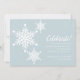Convite de festas de Natal Feriado com belos flocos de neve decorativos e queda de neve em azul e branco. O convite pode ser facilmente personalizado para o seu evento adicionando os detalhes do seu evento, estilo de fonte, tamanho de fonte e cor e texto da sua escolha, clicando no botão 'Personalizar'.