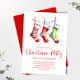 Este design apresenta um cartão postal de convite de festas de Natal, com um design de aquarela festiva, um elegante design tradicional, com estilo moderado minimalista, uma tipografia simples de escrita caligráfica, convites tradicionais de festas de férias, com meias bonitinhas brancas e brancas