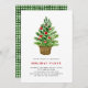 Convide familiares e amigos para a sua festa de férias com este convite personalizável para festas de feriado. Apresenta uma árvore de Natal festiva, aquarela, com ornamentos vermelhos num cesto mais vestido e um padrão de gingham verde. Personalize adicionando seus detalhes. Este convite da árvore de Natal é totalmente editável para qualquer evento. Itens correspondentes estão disponíveis.
