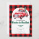 Red Truck espanhol e Xadrez de Buffalo Vermelho e Negro Fiesta de Navidad Convite de festas de Natal com quadro de arco desenhado à mão - Disponível como download digital instantâneo.