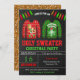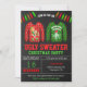 Convide seus convidados com este convite de festas de suéter engraçado e feio que apresenta tipografia moderna e suéteres de Natal engraçados contra um fundo de quadro negro. Basta adicionar os detalhes do seu evento neste modelo fácil de usar para torná-lo um convite de tipo único. Sacudir a placa para revelar uma textura falsa de brilho dourado na parte traseira da placa.