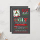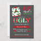 Convite para uma festa de suéter feia. Efeito de quadro verde, vermelho, branco.
