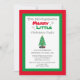 Convites de festas felizes de Natal. Convidar apresenta tema de feriado vermelho e verde com flocos de neve de cinza, árvore de Natal e presentes