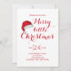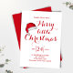 Este design apresenta um pequeno convite de Natal feliz, um chapéu de cor-de-água Santa, uma diversão fofa, moderna minimalista, tipografia de guiões, caligrafia, um tema certinho, simples vermelho e branco, engraçado, festas de férias.