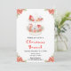 Este convite elegante e festivo para o almoço de festas apresenta uma banca de bolo com biscoitos de gengibre, macarões, doces, cacau quente e bule. Nos cantos estão lindas flores vermelhas da poinsettia. O texto combina o script manuscrito e as fontes sans serif para uma aparência na moda e moderna. Isto é perfeito para uma festa de café de Natal ou chá.