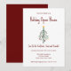 Convite para festas festivas, com uma árvore de Natal e design de tipografia vermelha. Com a inscrição personalizável, você pode adicionar seu próprio texto. Um convite divertido para planejar uma celebração com amigos.
