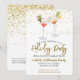 Uma bela festa de Natal ou convite de festas de cocktails de Natal. Este convite fabuloso mostra coquetéis de aquarela em um fundo de confete dourado. Fácil de personalizar com os seus próprios detalhes de festas de férias.