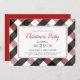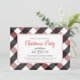 Este convite de festas de Natal apresenta um plano de fundo preto e vermelho. O design é acentuado com a caligrafia vermelha da moda.