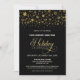 Um convite para comemorações de feriado corporativo de na moda negro, com flocos de neve de ouro, para convidar seus estimados colegas e convidados a comemorar a época festiva.
