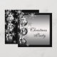 Convites de festa de Natal corporativos com flocos de neve pretos e prateados.