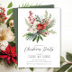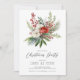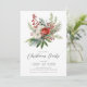 Este elegante convite para festas de Natal apresenta um belo ramo pinheiro, flores vermelhas e brancas e amoras ocas colocadas sobre um fundo branco. O convite é perfeito para convidar seus amigos e família para um encontro festivo. O design geral é festivo e sofisticado, e o convite é para impressionar seus convidados.