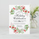 Este belo convite é uma forma excelente de convidar pessoas a compartilhar suas festas de Natal ou de Natal. Apresenta imagens florais de aquarela de vermelho e verde com um elegante roteiro de caligrafia preta.
