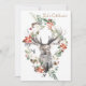 Compartilhe do calor da arte do vintage esta época natalícia com estes convites inteiramente customizáveis da festa natalícia. Excelente para um partido de comensal! O cobrir caracteriza uma imagem do país do vintage de um cervo mágico cercado por uma grinalda floral. A parte traseira é projetada com um fundo da floresta e mais flores do feriado.