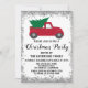 Celebre a época de férias com este caminhão festivo vermelho-vintage com presentes de Natal. Os detalhes do partido são escritos em uma tipografia branca e esbranquiçada de escrita negra, com uma luz cintilante prateada brilha na borda e fundo branco. Este convite é perfeito para uma festa de Natal/ Natal/ inverno!