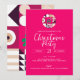 Convite de festas de Natal moderno, cor-de-rosa vibrante. design de tipografia na moda com padrão geométrico burgundy e rosa com suporte embutido.