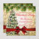Produtos correspondentes disponíveis! Elegante modelo de Natal russo / Festa de inverno com Árvore de Natal, Confetti Glitter & Red Ribbon em ouro mais texto personalizado. Excelente para eventos da família e da empresa.