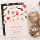 Festa de natal com aquarelas com ilustração de coisas bonitas de Natal, chapéu de Natal, meia, presente, pinheiro, luva, galhos, morango, bege