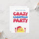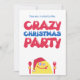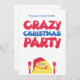 Engraçado convite com uma criatura amarela doida segurando um garfo e uma colher e o texto "Você está convidado para minha festa de Natal louca" escrito em letras engraçadas. Designs relacionados: