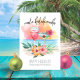Tema do mar tropical O convite de festas de Natal apresenta um pôr do sol de praia em aquarela, cocktails festivos, flores de hibisco e folhas de palma com uma legenda "Mele Kalikimaka" em letra de estilo manuscrita. Perfeito para as festas de férias de praia, tropical, havaiana, luau e Tiki.