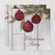 Convide convidados para uma memorável Festa de Natal com este elegante convite de ornamentos ruidosos e vermelhos decorando uma árvore com um escudo branco sobre fundo de madeira reivindicada. Artesanato original pintado à mão em aquarela.
