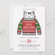 Este Convite de festas Moderno de Gato Feio Desenho de Natal mostra um gato adorável, orgulhosamente esportivo, um suéter delicioso e feio, capturando o espírito caprichoso da temporada de festas. O design moderno se rompe com cores vibrantes e detalhes lúdicos que destacam a personalidade encantadora do gato, fazer-o ponto focal do convite. Com sua encantadora mistura de alegria festiva e diversão felina, este convite é perfeito para convidar convidados para uma festa acolhedora e peculiar onde todos podem abraçar a alegria de suéteres feios e celebrar juntos os feriados!