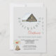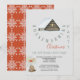 Feriados de inverno, convite de festas vermelho e cinza no estilo da tipografia moderna, com uma pequena casa de casaco com aquarela, sino holly e flocos de neve estilizados no verso. +++++++ Personalize-o com seus detalhes! ++++++ Adequado para festas de inverno de aquecimento doméstico - nova casa, nova cabana das montanhas, cabana do país.