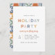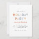 Prepare-se para comemorar com nosso vibrante convite do Feriado de na moda! A frente exibe "HOLIDAY PARTITY" em letras maiúsculas coloridas e a negrito, seguidas do nome do anfitrião num guião cor de laranja lúdico. Abaixo, os detalhes da festa são exibidos em um formato simples e moderno — com a data, a hora e o local organizados em um layout limpo e atraente com um separador de linha vertical. O espaço para RSVP é incluído na parte inferior. O dorso apresenta um padrão geométrico inspirado em Bauhaus, com formas festivas como estrelas, presentes, árvores de Natal e bolhas. Uma mistura de minimalismo moderno e vibrantes vibrações de férias. Veja a coleção ligada nesta página para itens correspondentes ou visite a nossa loja para mais convites de festas de Natal!