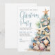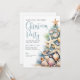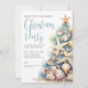 Convide os convidados para a sua festa de Natal com este convite festivo e praiano, projetado com um clima tropical relaxado. O layout apresenta uma mistura de fontes azuis e pretas no canto superior esquerdo, combinando caligrafia cursiva com tipografia serif limpa para um visual alegre e moderno.